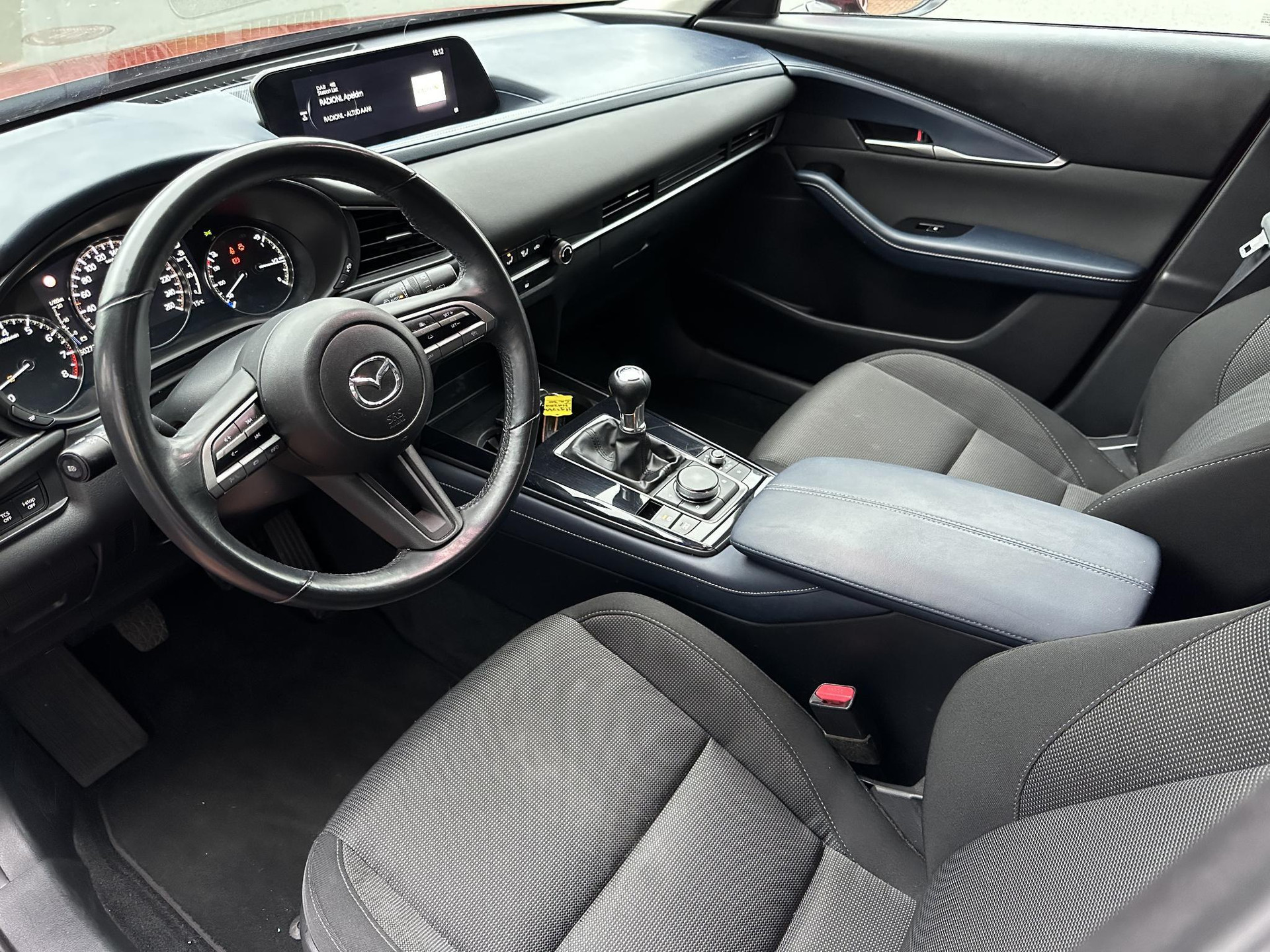 Zoals u mag verwachten van deze Mazda CX-30 is hij uitgerust met een reeks aan actieve veiligheidssystemen. In het instrumentarium ziet u tijdens de rit ook de belangrijkste verkeersborden aangegeven, die de auto automatisch voor u leest. Met het Lane-keeping systeem gaat u nooit onbedoeld over de streep. Veel aanrijdingen bestaan uit kop-staartbotsingen. De forward collision warning reduceert dat risico aanzienlijk. De veiligheid van deze auto wordt verder verhoogd door head-up display, dodehoekdetectie, hill hold functie, brake assist, vermoeidheidsherkenning en bandenspanningcontrolesysteem.