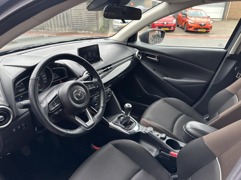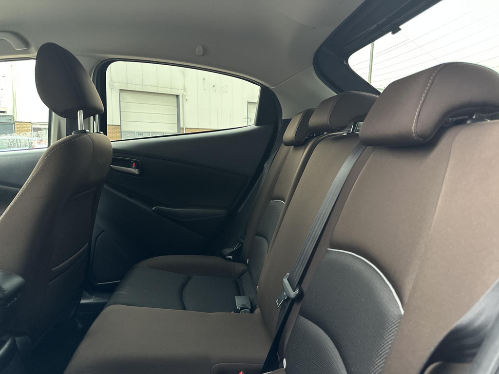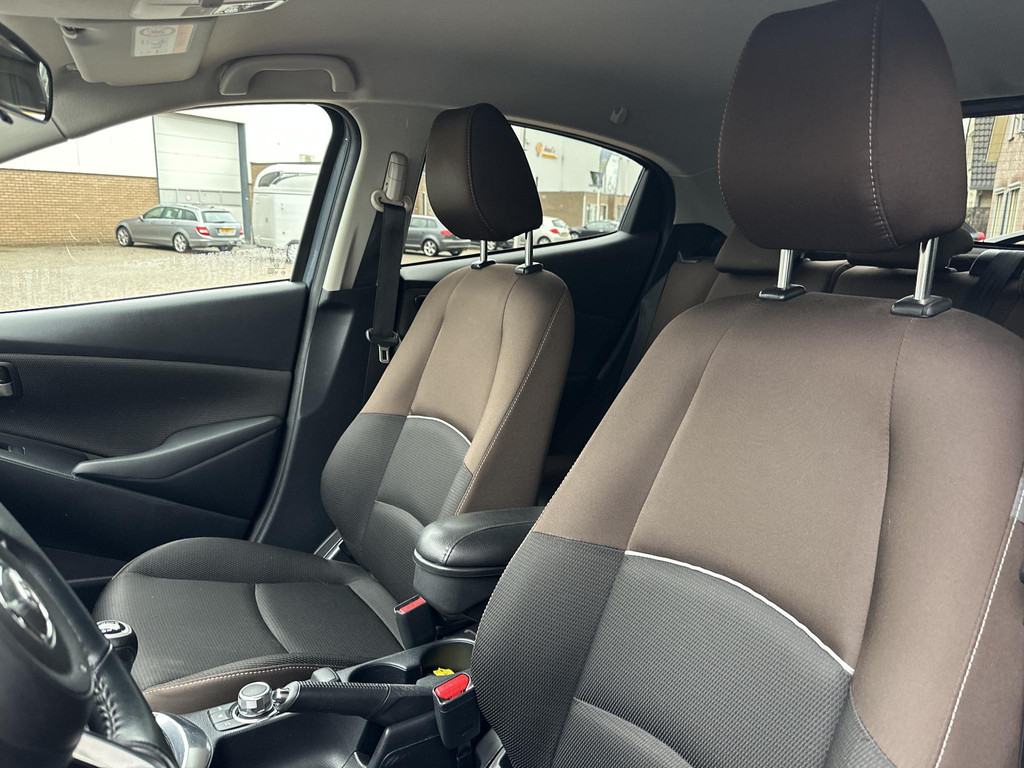 Twijfelen hoeveel ruimte u achter de auto heeft? Met de achteruitrijcamera weet u altijd hoeveel centimeter! Deze Mazda 2 is voorzien van sensoren aan de achterzijde om een achteropkomend verkeer waarschuwing te geven als de afstand tussen u en een achterligger te klein is. Andere zender, andere muziek, meer volume? Met de audiobediening op het stuur is het makkelijk en veilig geregeld. Zuinig zoeven, dat kan deze auto dankzij de aanwezige cruise control. Sleutelloos instappen en wegrijden! De keyless start herkent de elektronische sleutel in uw bezit en start de motor met een druk op de knop. Extra opties op deze auto zijn: airconditioning, lederen stuur, centrale deurvergrendeling met afstandsbediening, boordcomputer en lederen versnellingspook.